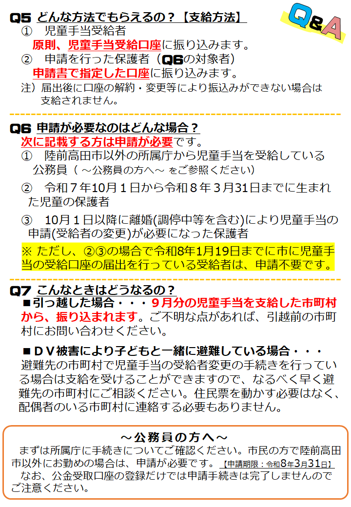 令和8年1月19日までに市に対象児童の児童手当の受給口座の登録がない方は申請が必要です。