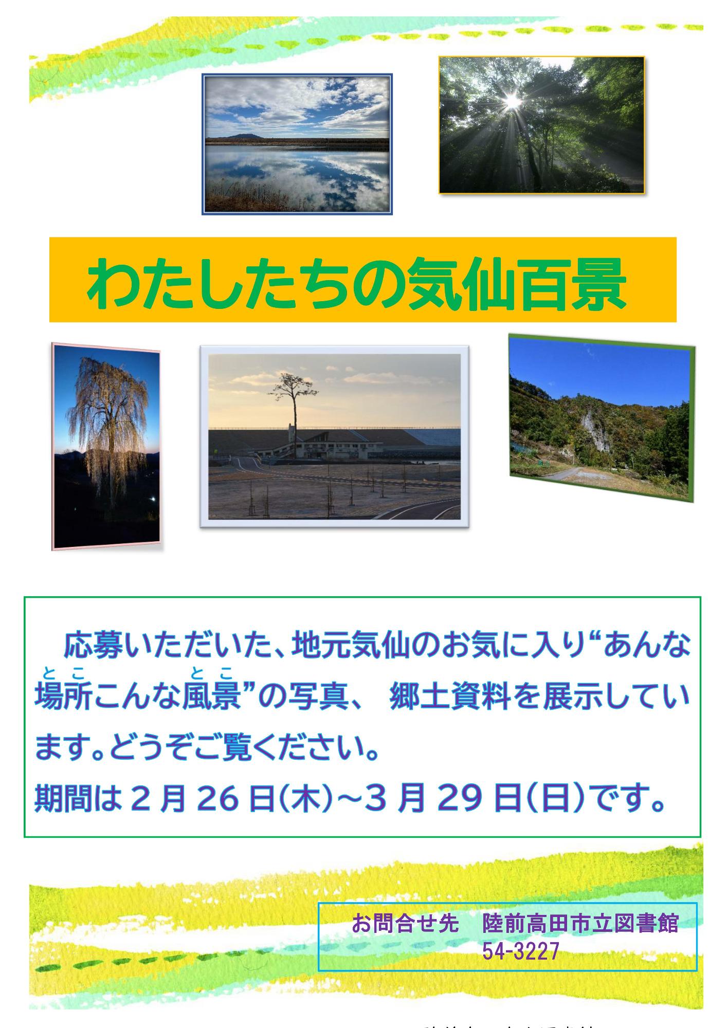 あなたが撮った地元"気仙のお気に入り写真”を募集します。お寄せいただいた写真は「わたしたちの気仙百景」展で展示します。たくさんの応募お待ちしています。