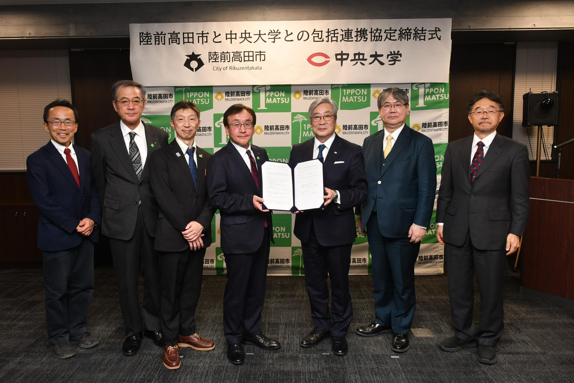 本市と中央大学は、産官学の共創関係による人的・物的資源の有効活用と、教育研究機関としての知的ノウハウを生かした協働によって、様々な分野における強固な連携関係を構築し、地域課題の解決や地域の活性化を目指すことを目的とした包括連携協定を締結しました。