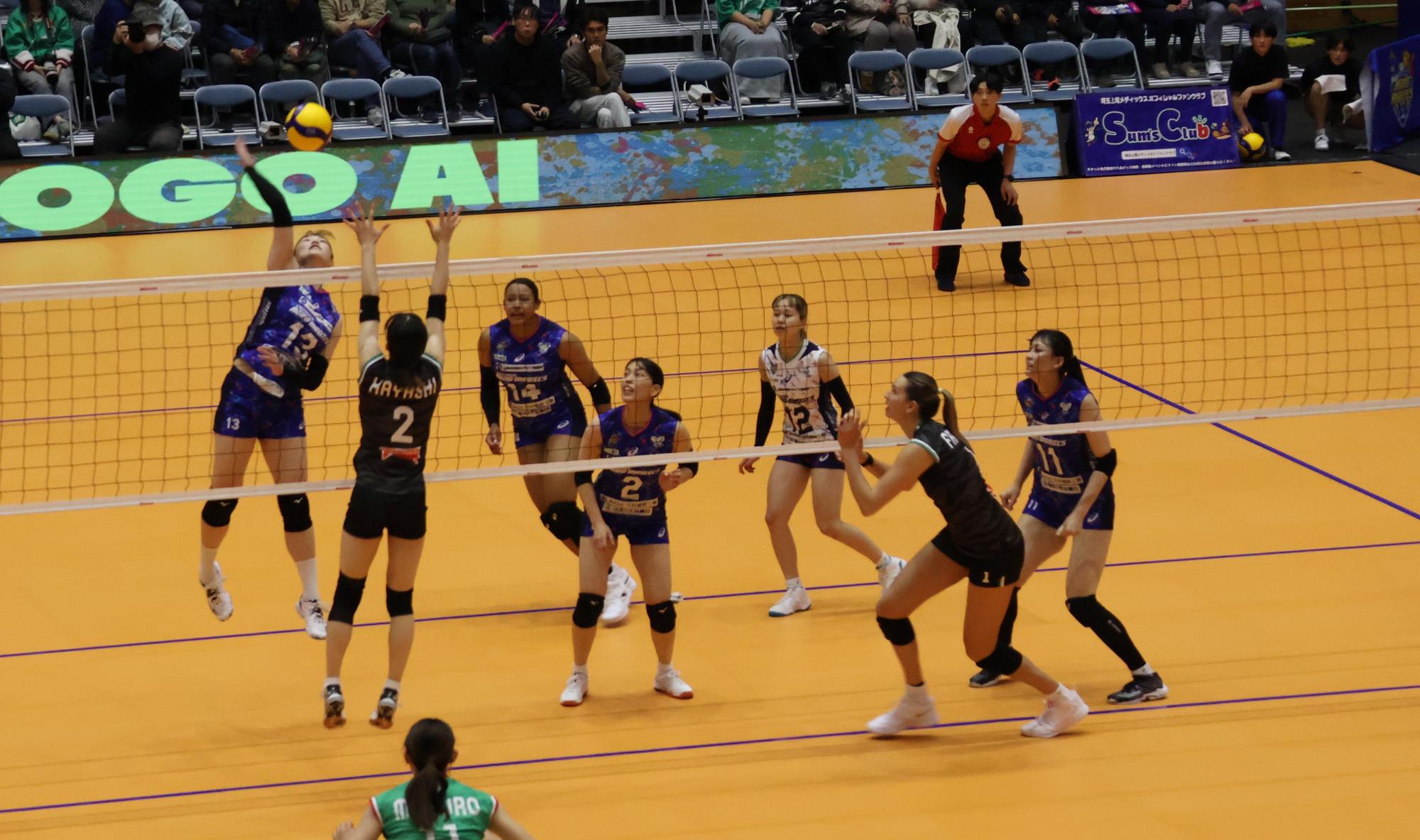 試合は、対戦相手の大阪マーヴェラスと一進一退の競り合いが続く展開に。上尾メディックスは残念ながら敗れましたが、力強いスパイクなどで観戦した市民らを魅了していました。