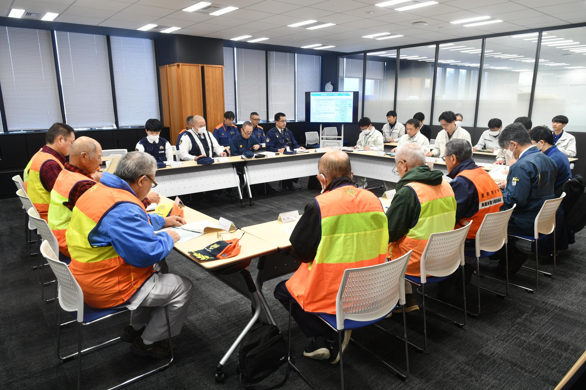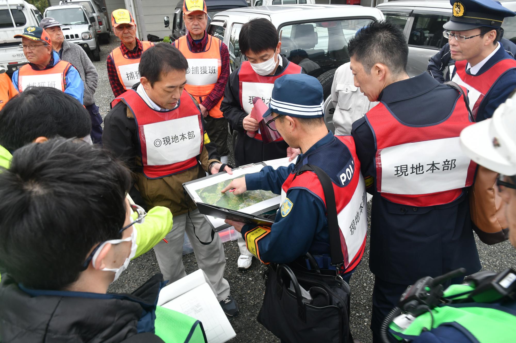 訓練は、緊急銃猟制度の概要や全国の実施事例を確認する机上訓練とクマの目撃情報が相次いだ滝の里町内会館付近で一連の手順を実施する実地訓練の2つの訓練を行いました。