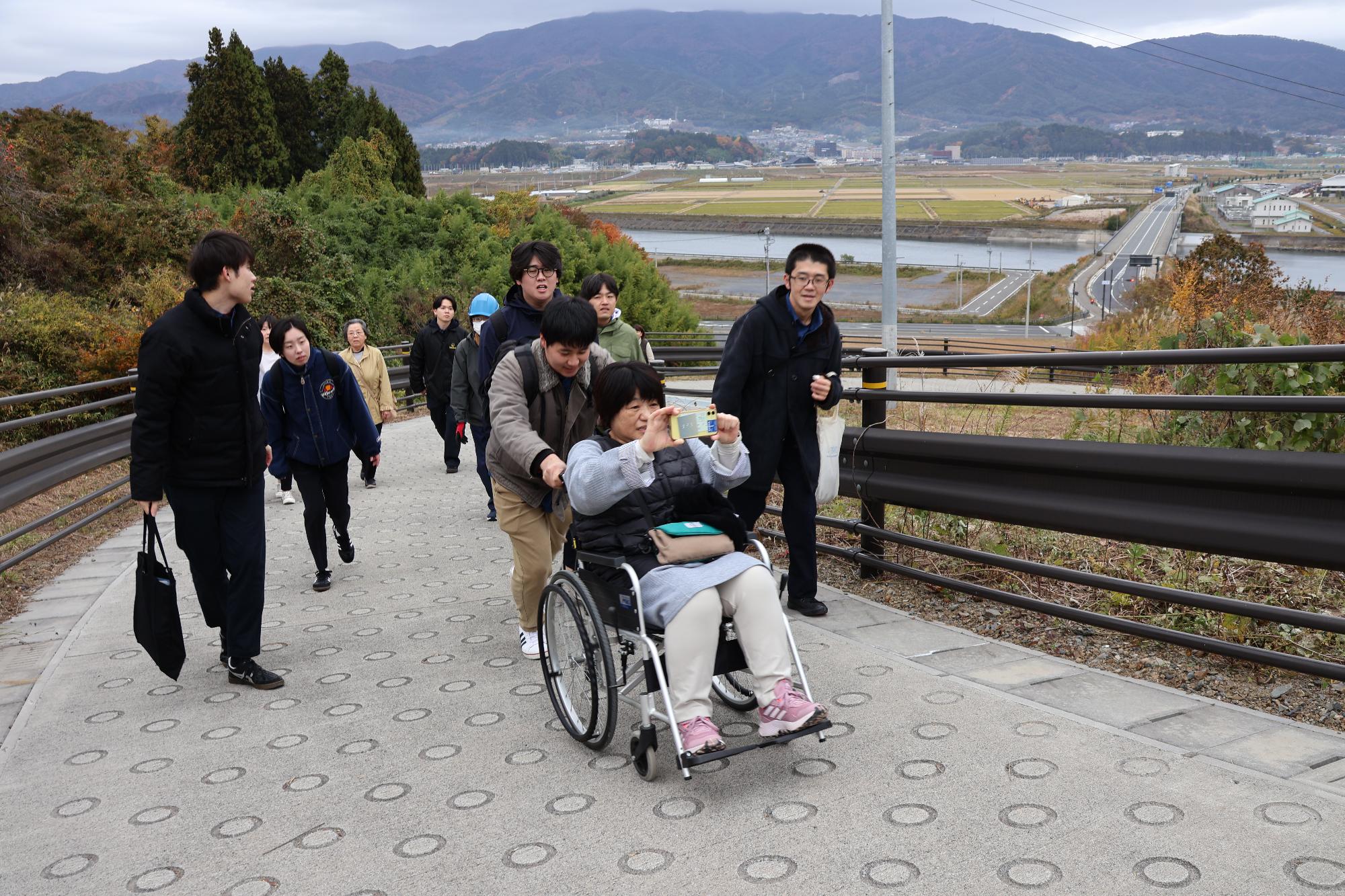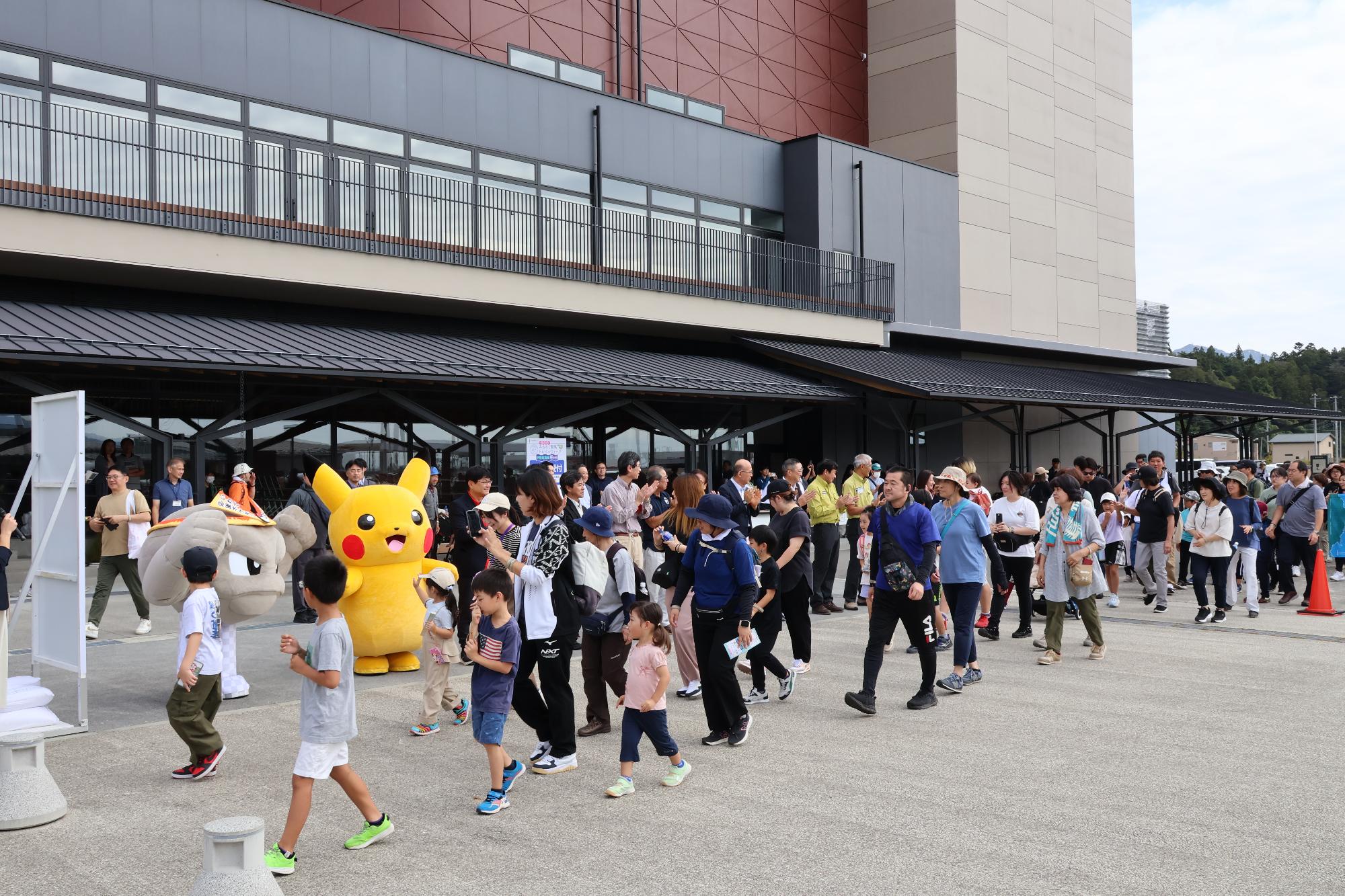 ポケモンのキャラクター・ピカチュウとイシツブテも駆け付けた本イベントには、ハイカーや多くの親子など約400人が参加し、奇跡の一本松や震災遺構の気仙中学校などをまわり、復興の様子に触れながらゴールを目指していました。