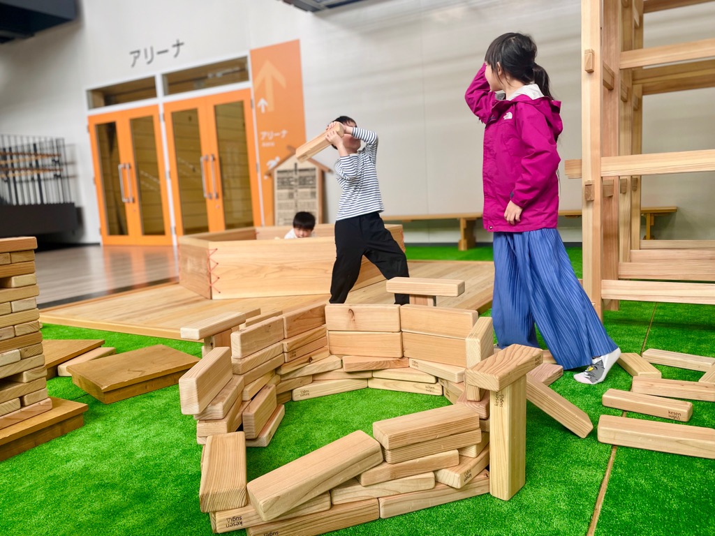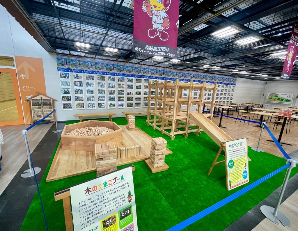 なお、貸出しする木育遊具は、夢アリーナたかたに「気仙スギ木育ひろば」として設置していますので、どうぞお気軽にご利用、ご見学ください。